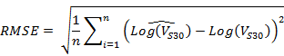 VS30 extrapolation can help expand the data volume while inevitably introducing uncertainty into the extrapolated result. Here, the uncertainty is presented by the model RMSE, which is defined by: